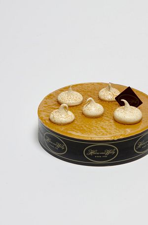 Hazelnoot guanduja mousse, chocolade biscuit met kaneel glazuur en koffie meringue