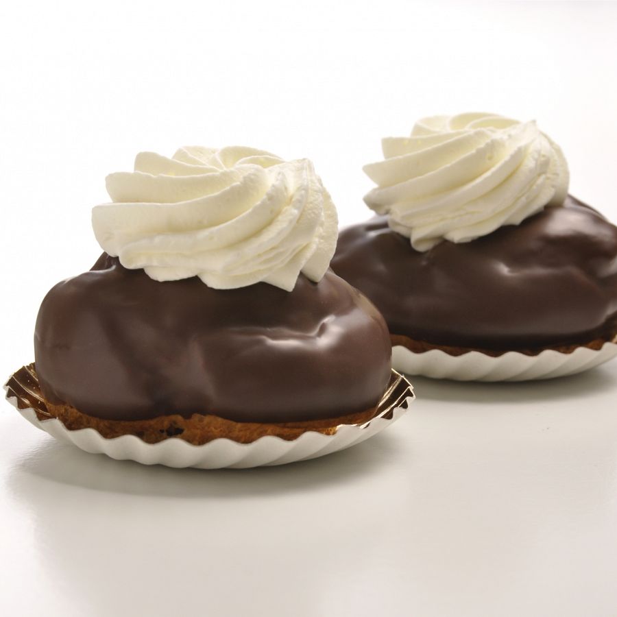 Ook wel Religieuse genoemd; soes gevuld met banketbakkersroom, omhuld met een pure chocolade fondant