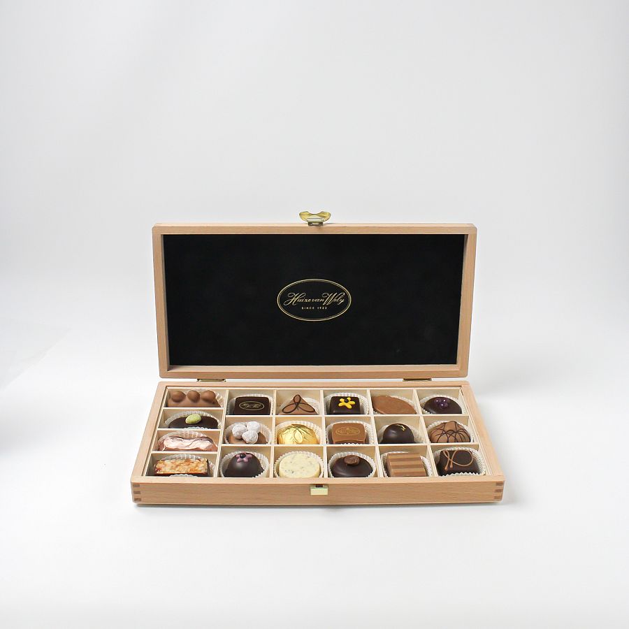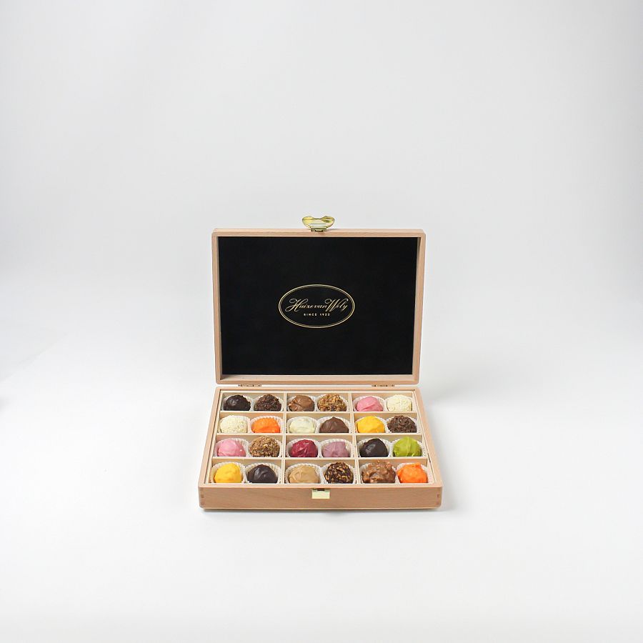 Beukenhouten geschenkkist truffel assorti (24 stuks)