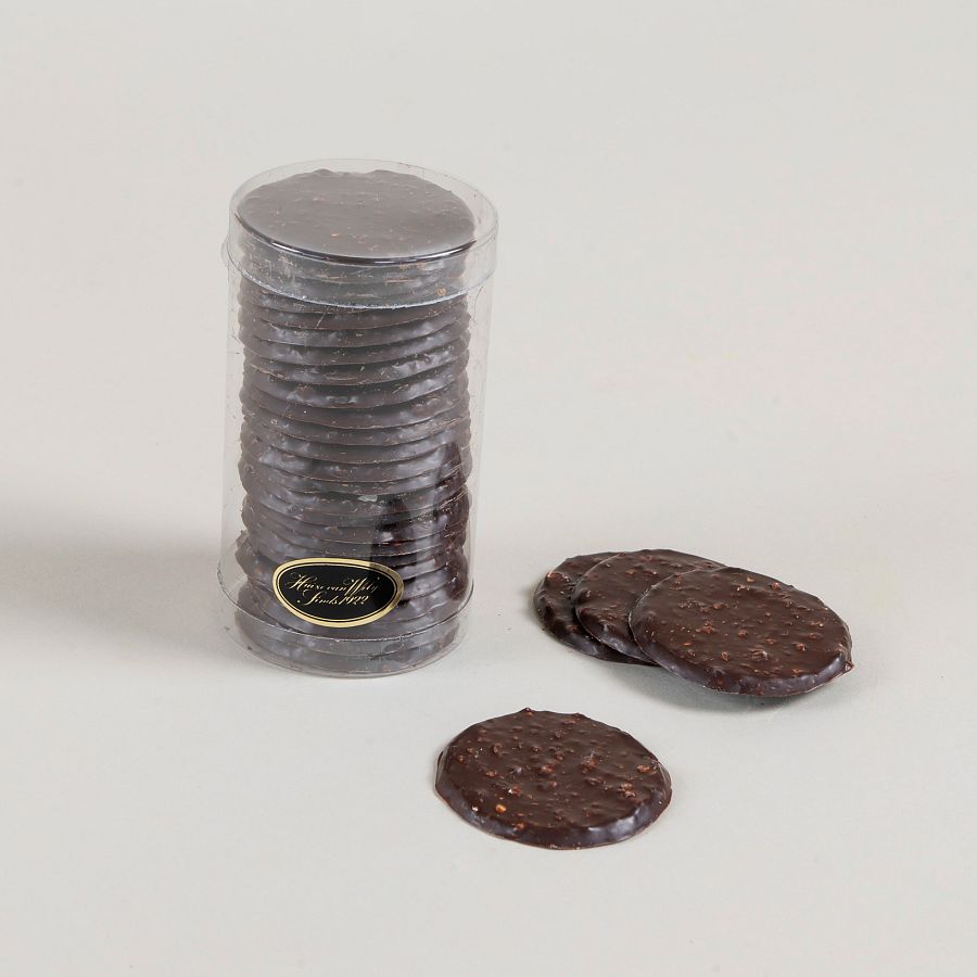 Gevuld met chocoladegalettes van pure chocolade met stukjes hazelnoot Ook verkrijgbaar in de smaken melk-hazelnoot, ...
