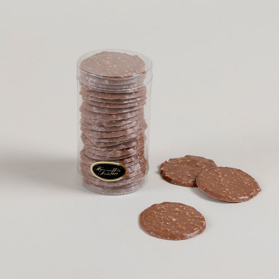Gevuld met chocoladegalettes van melkchocolade met stukjes hazelnoot Ook verkrijgbaar in de smaken puur-hazelnoot, ...