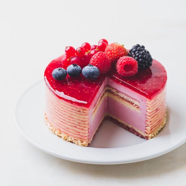 Tip van onze patissiers: haal uw taart een half uur voor het nuttigen uit de koelkast en maak uw mes even warm onder de hete kraan om gladde taartpunten te kunnen snijden.