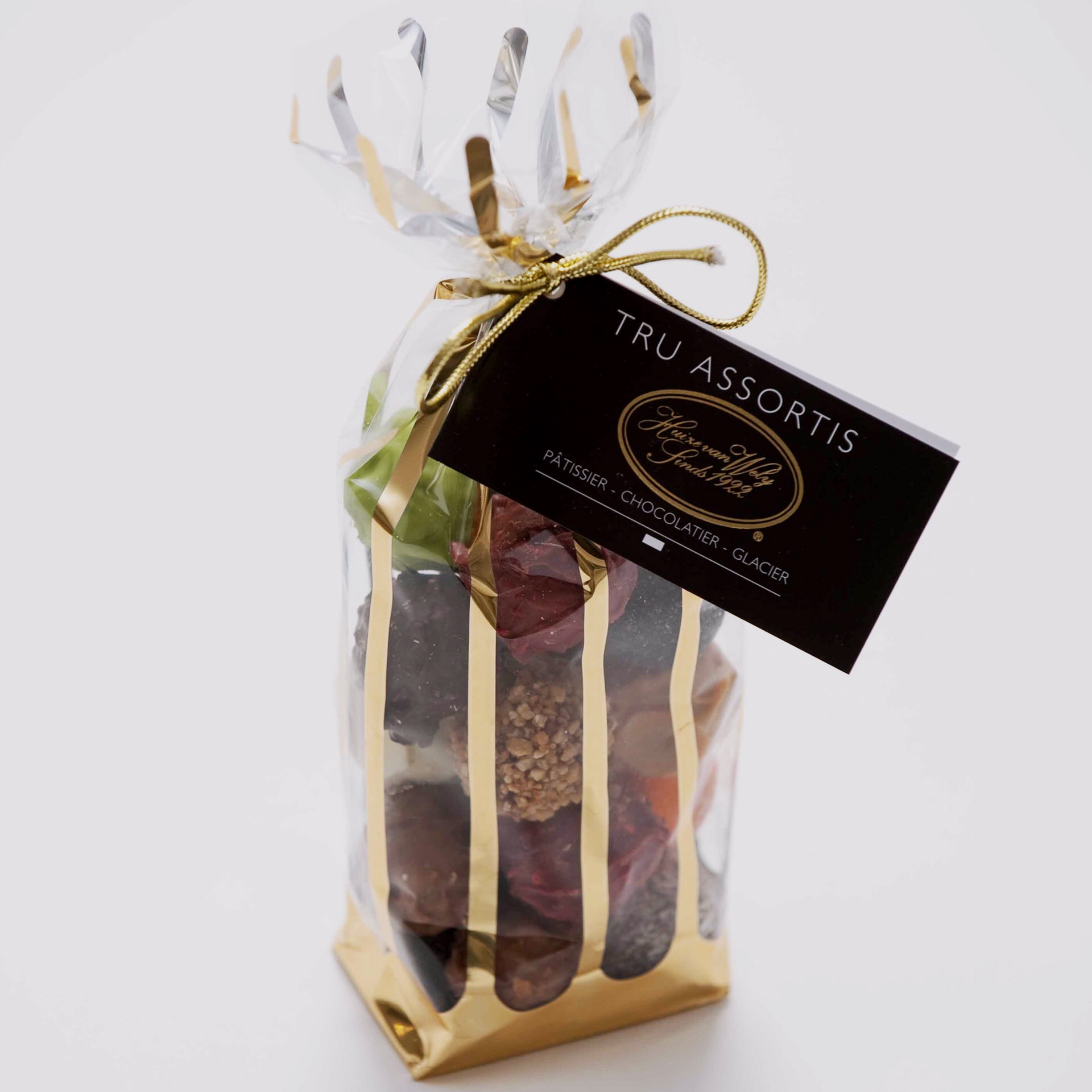 Goudstreepzakje gevuld met een truffel assorti (18 stuks)